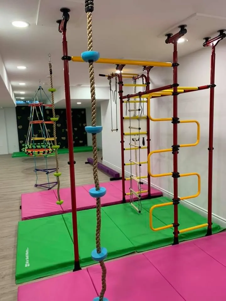 Multi-use family space: Half-gym, half-media room with a sliding divider or acoustic curtain for flexible weekends.